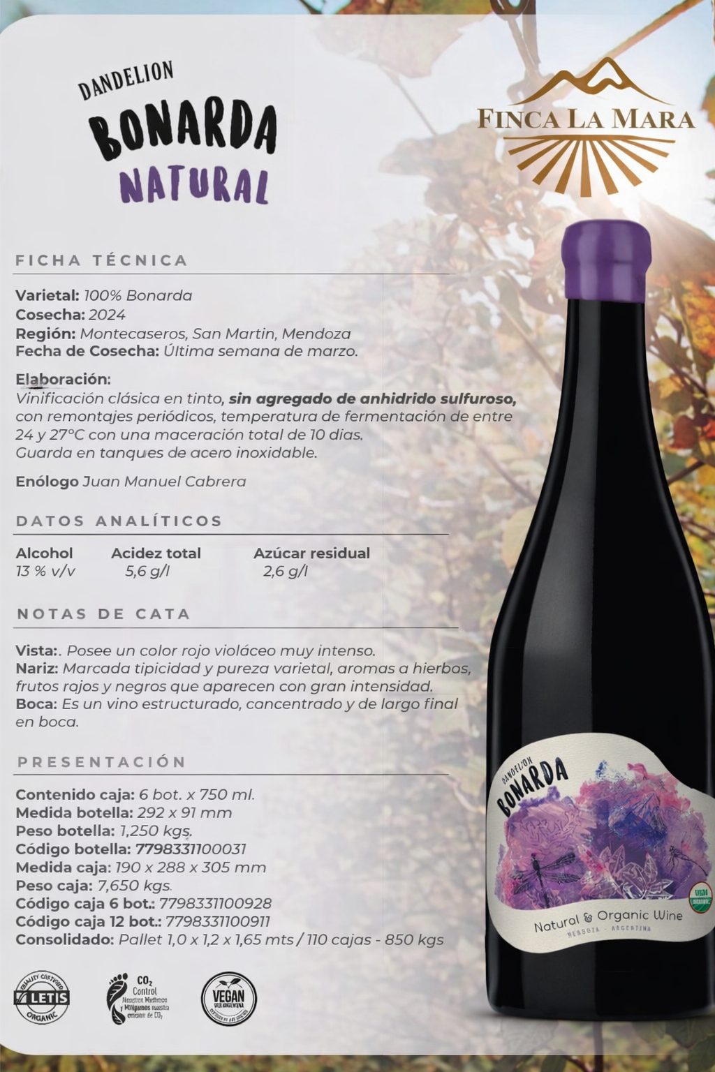 DANDELION NATURAL BONARDA – Las compras son por cajas de 6 unidades – Combinalos como quieras –