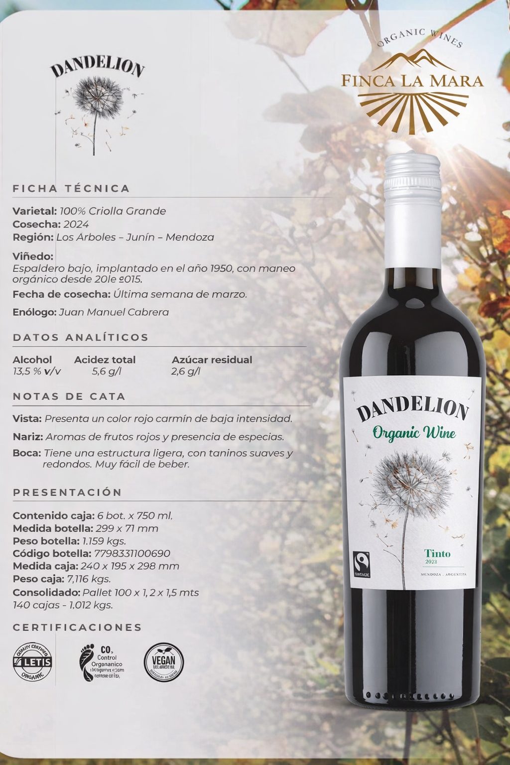 DANDELION TINTO DE CRIOLLA -Las compras son por cajas de 6 unidades – Combinalos como quieras –
